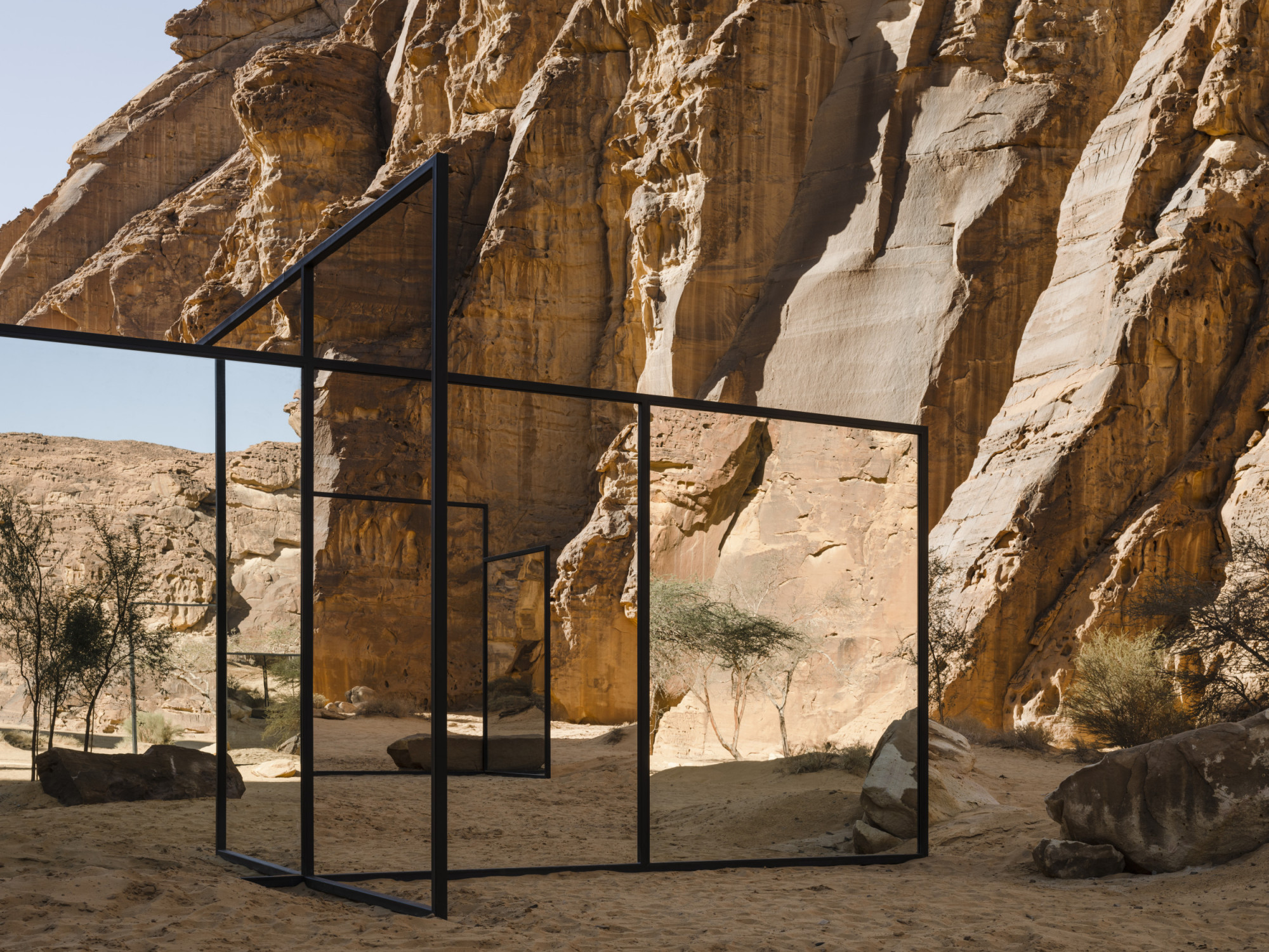 In Blur is more of an experience than a static installation. It comes to life through the viewer’s movement within the structure, as the way they read and understand the objects within it shifts depending on their perspective. This poetic work of art is a complex interplay of reflections on the world around us; it challenges the visitor’s understanding of their surroundings, emphasizing the subjectivity of perception and thus reality. In Blur draws inspiration from the surrounding iconic landscape and geological heritage. It features and strengthens the iconic landscape in all aspects: the vastness of the desert, the clear sky, the dramatic canyon. Reflecting the light and atmosphere of the desert, the mirrors almost create a Fata Morgana effect.
