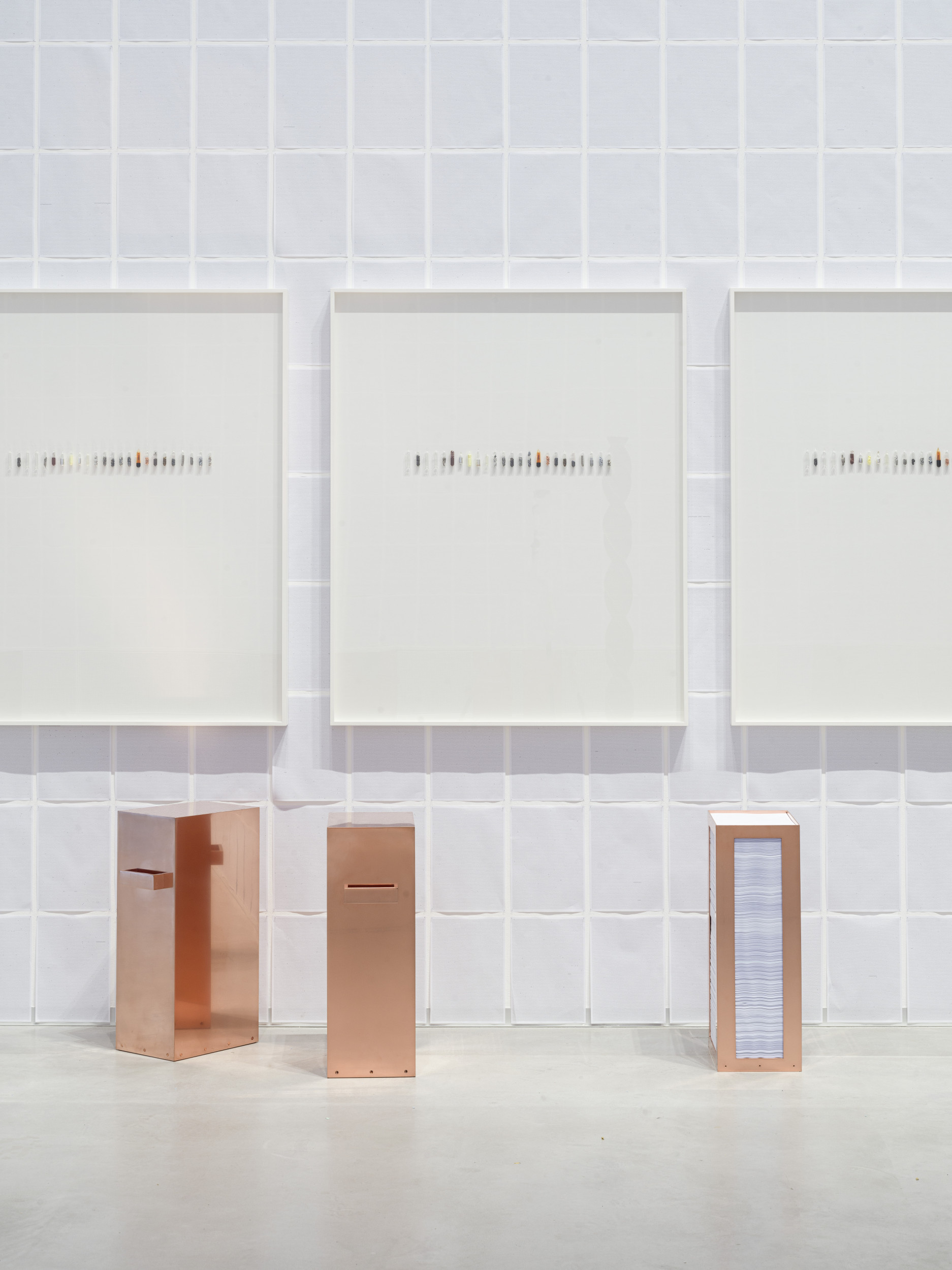 “In Abwesenheit” (In Absence) is founded on recent works by Kwade that might in a broad sense be read as self-portraits. The artist explores how a person and their physical presence in space can be described from various methodological perspectives.