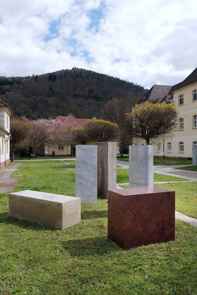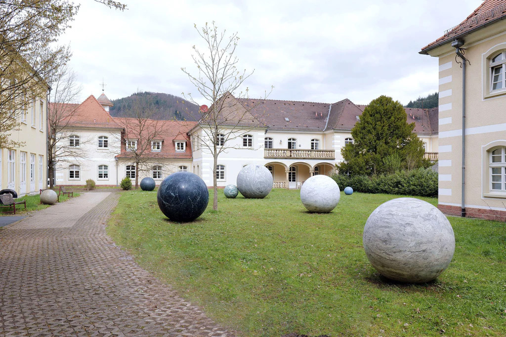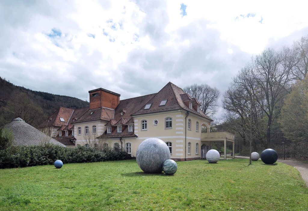 A presentation of four works by Alicja Kwade is featured at Skulpturenpark in Heidelberg for Summer 2023, highlighted by the arrival of her recent installation for the Place Vendôme in Paris, PARS PRO TOTO, 2020. This work consists of 8 stone spheres created from quarries sourced from nearly every continent around the globe. Laid out together, these resemble a kind of improbable, scaled-down version of the cosmos, or alternatively, a scaled-up diagram of atomic particles. The undecidability is an inherent feature of the work, giving shape to the double infinity of scale that is a foundational structure of the universe – both infinitesimally and unfathomably big.