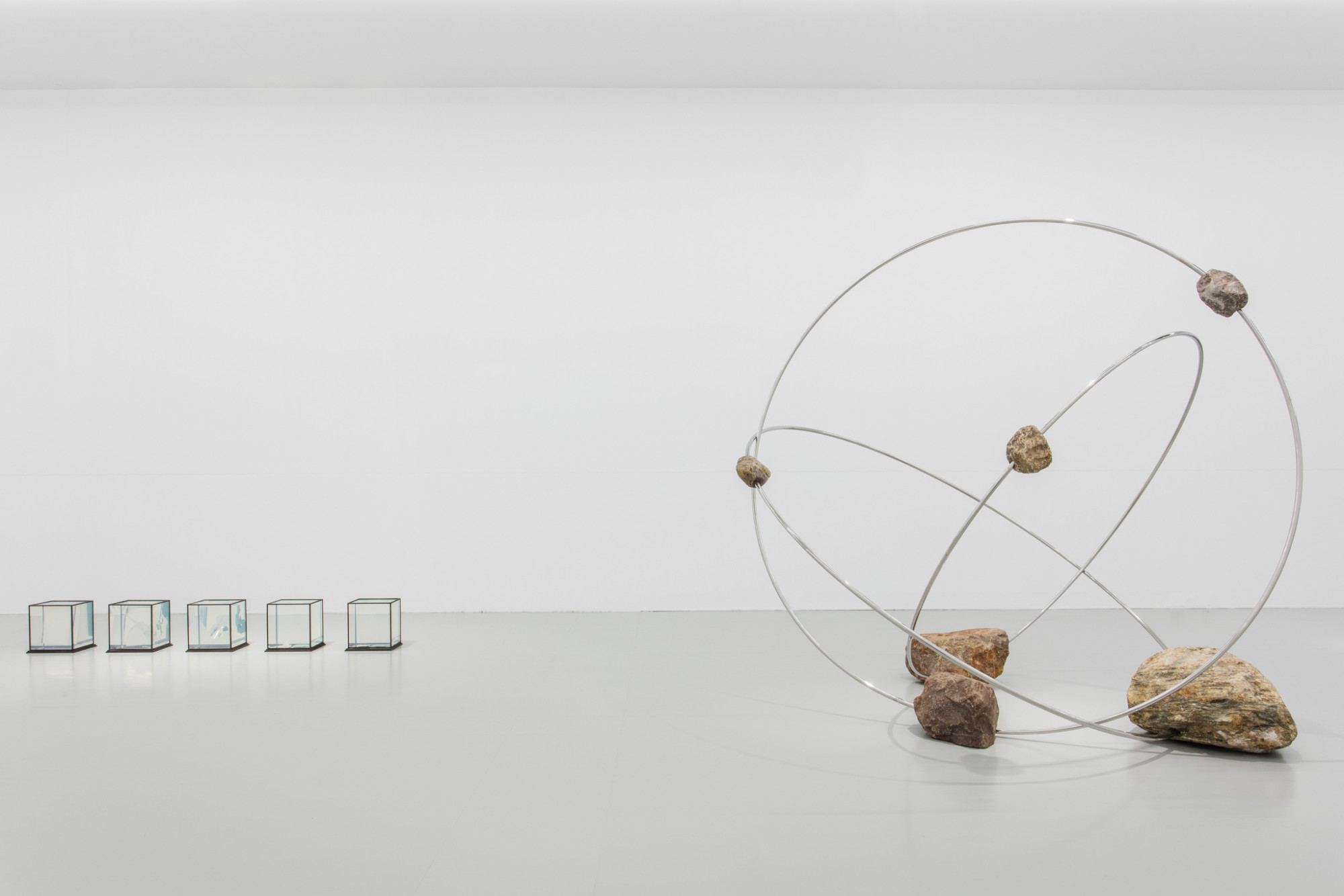 Alicja Kwade introduces “ReReason,” attaching the Latin prefix “re” to the English word “reason,” with the intention of reviewing reason and reapplying dialectical thoughts. Under Kwade’s deconstruction, the things that we take for granted and the logics that we deem unassailable are gradually opened up, and a fissure revealed in their construction for rethinking. Her visualisation is far and wide, ranging from individual lives to the vast universe. Faced with these complex issues, she accurately reduces them into a rational but poetic artistic style, like simplifying a conundrum into a sensible formula through numerous calculations, deductions and reductions. As a result, many of her works are titled by mathematical terms, such as Saga (Spira Mirabilis), the sizeable installation that the exhibition starts with. This work consists of planar and linear daily objects made of wood, glass, steel, copper and mirror, and all those objects bend towards the centre to comprise an array as if a mysterious force dwelling in the centre unseen were coercing the materials. Those objects that stand still seem to be in an unnatural display, but centripetal force is not rare in the natural world; for example, the earth revolves round the sun, the wavelets ripple from a central point, and, as with the Spira Mirabilis formula, vectors multiplied by a certain function spiral around a fixed point and create graceful curves in a coordinate. Kwade utilizes the generally forgotten natural phenomenon to cleverly connect everyday articles with a cosmic power, employing familiar mediums to soften scrupulous mathematical logics whilst vibrating rational norms with sensory visions, in the end to stir up the confined cage of our mind.