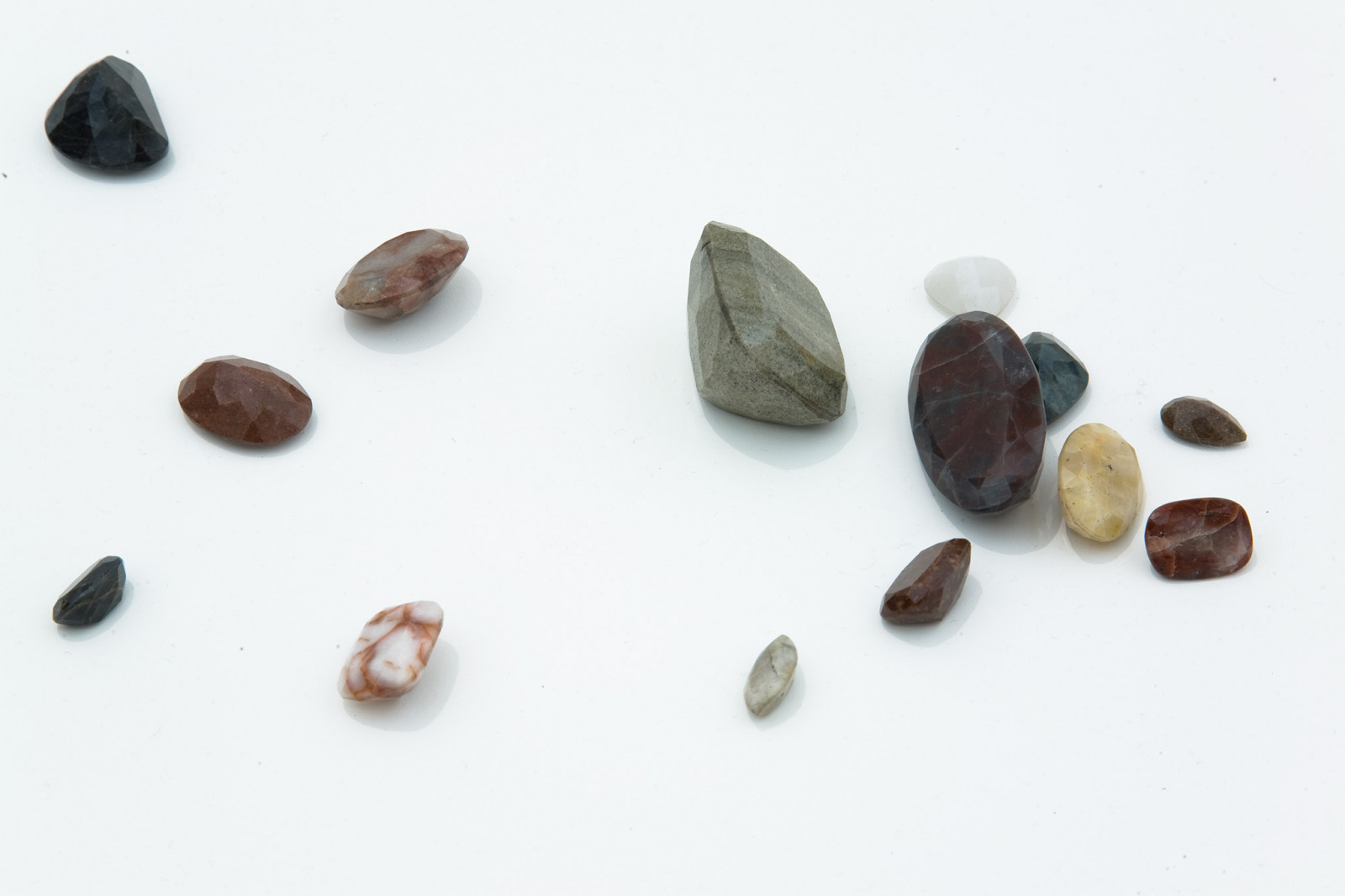 Stones found in the streets of Berlin, different sizes, carved and polished in the classical facet style