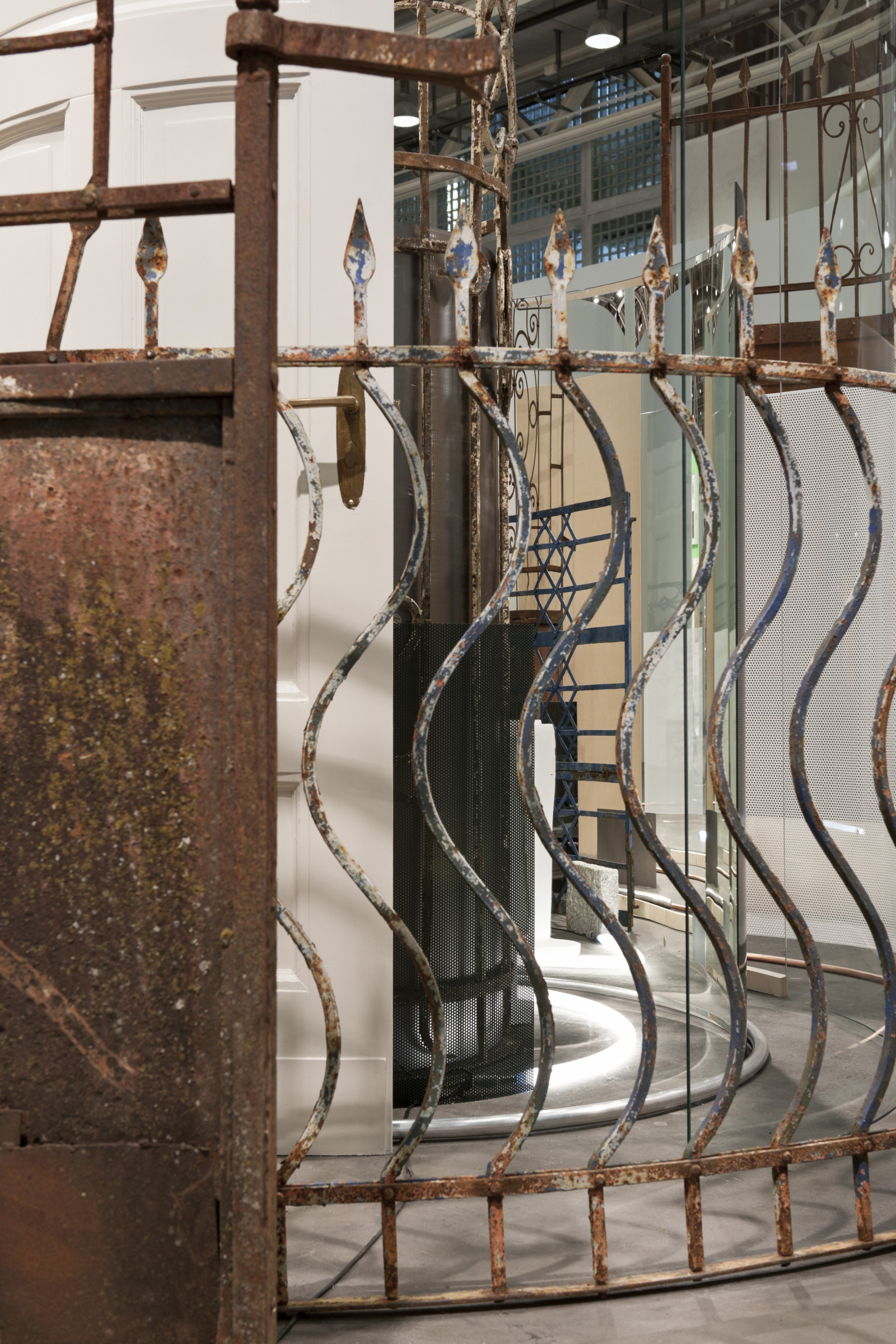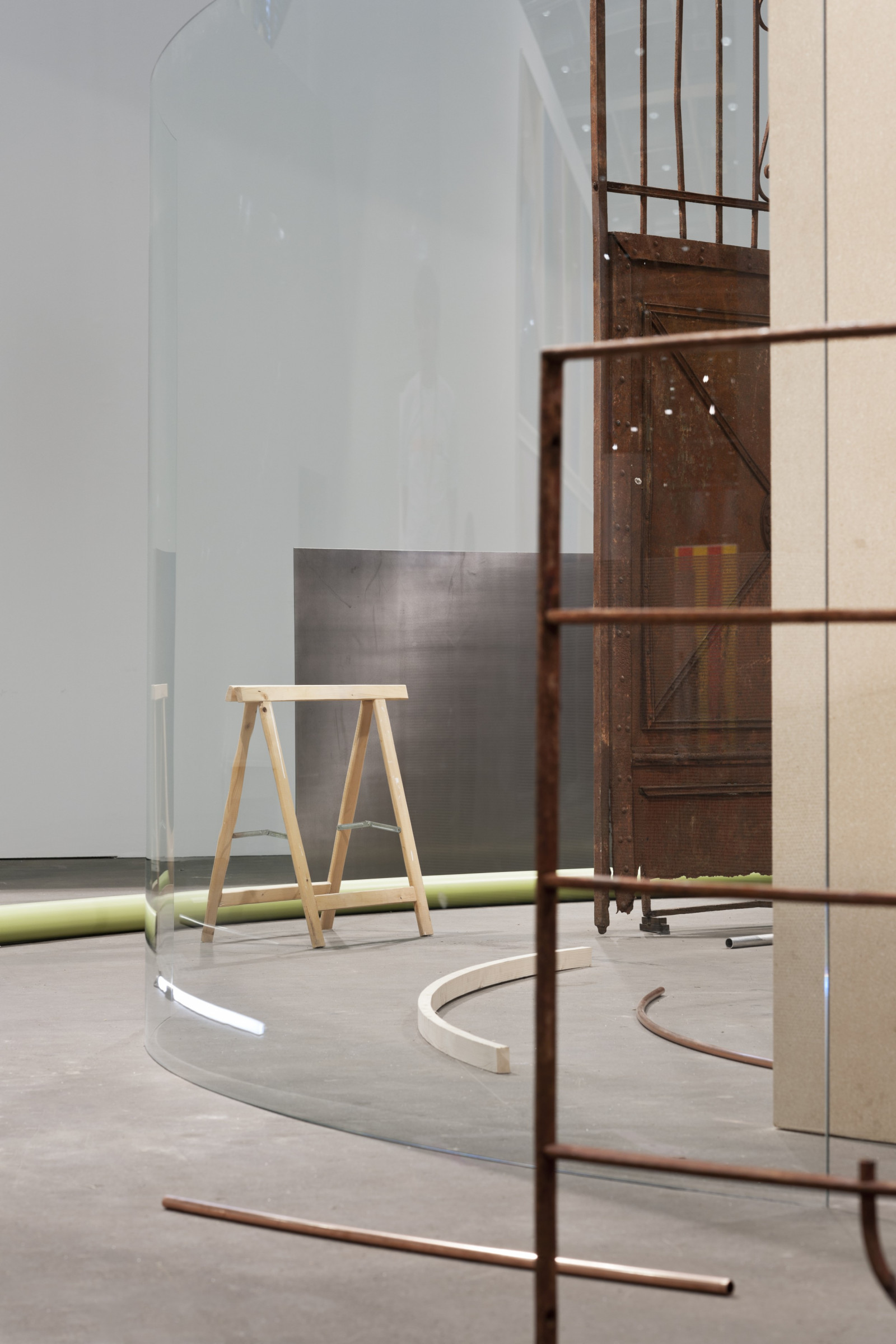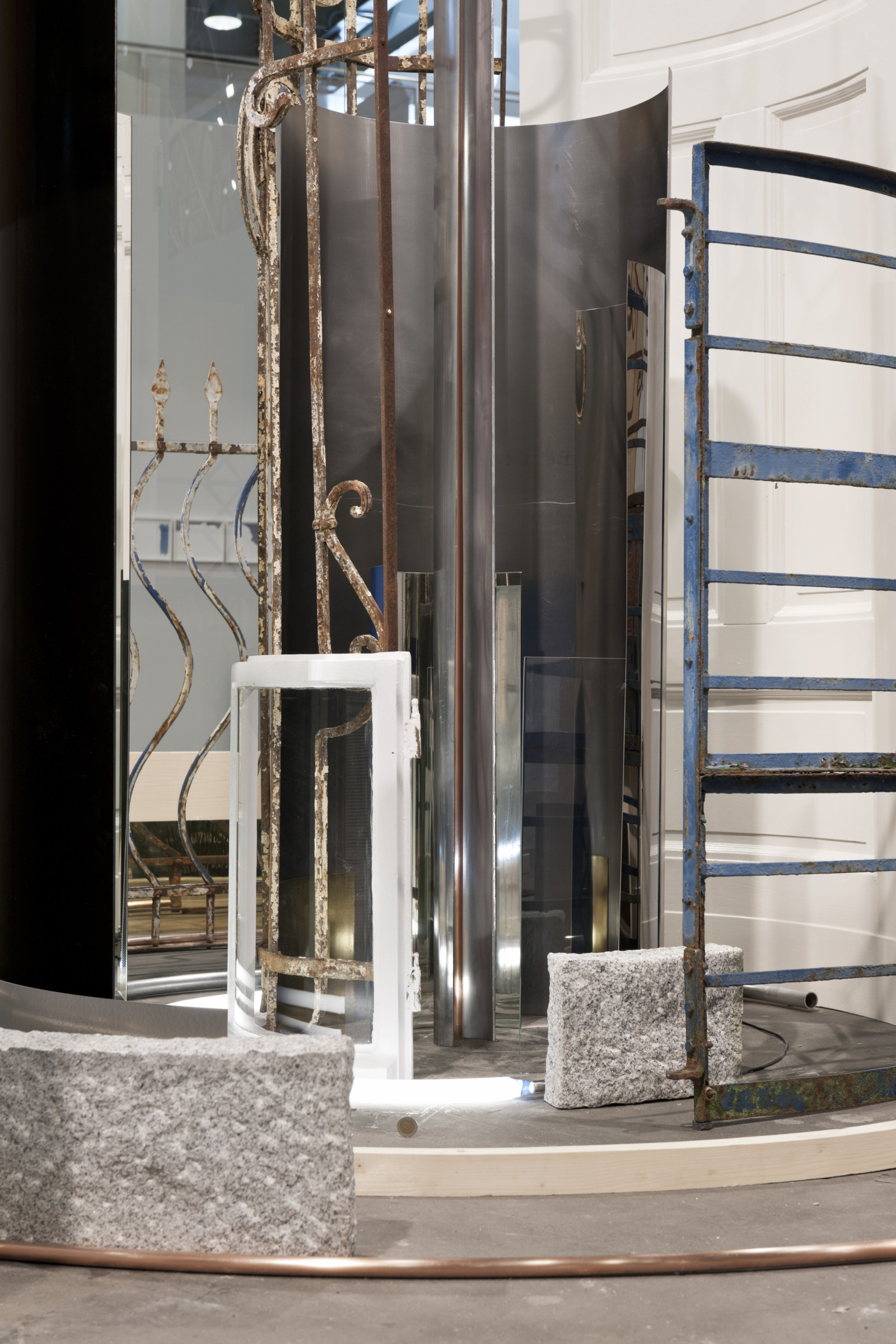 wood, copper, brass, glass, aluminium, granite, steel, mirror, bronze, MDF, neon tube, found objects, 70 parts