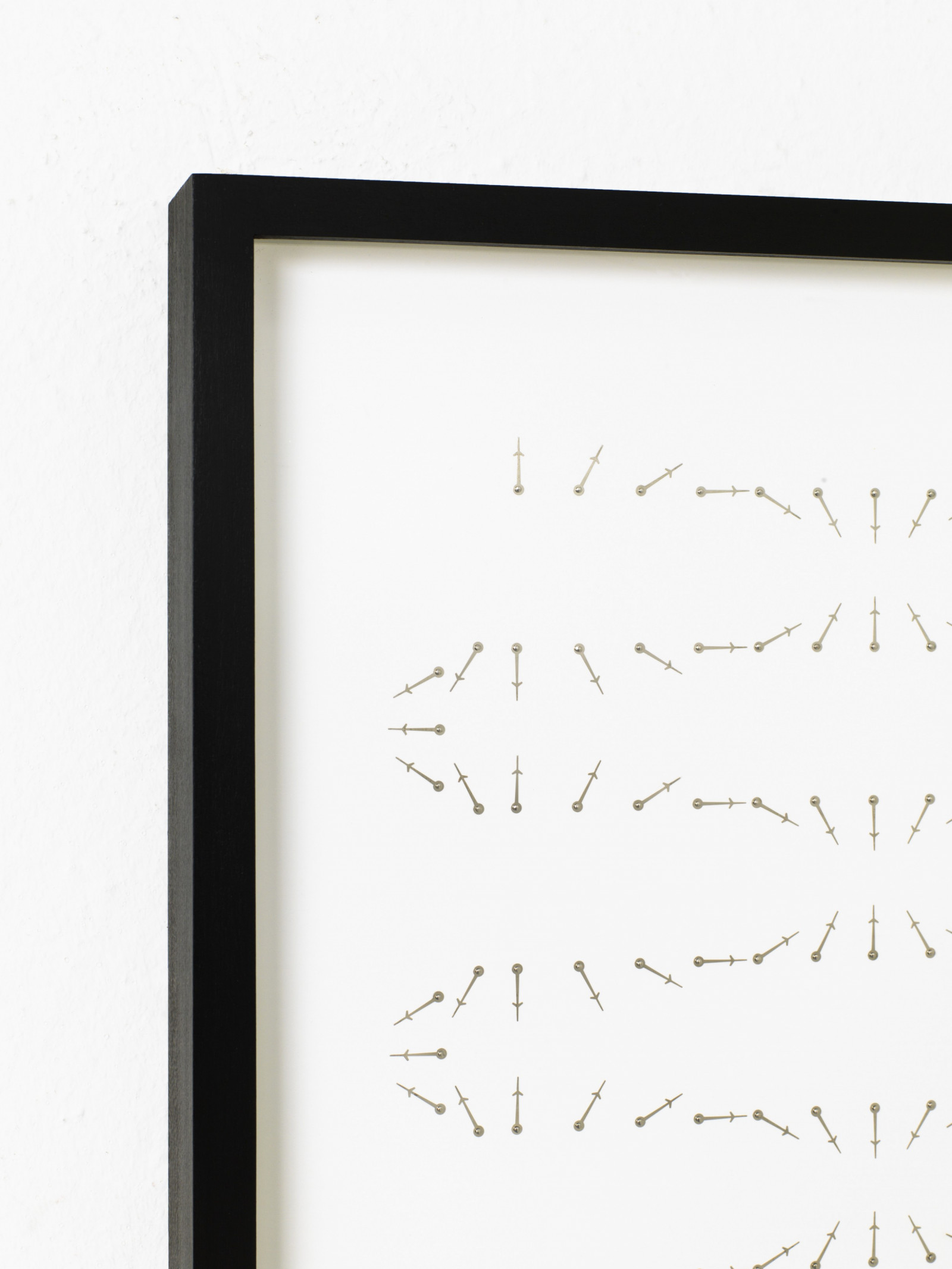clock hands on cardboard, framed