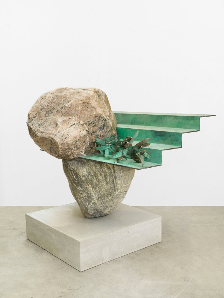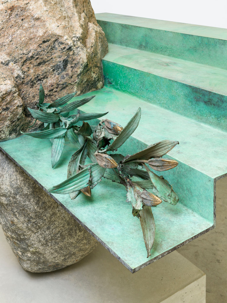 Alicja Kwades "Matter-Mind" is a composition that intertwines a substantial boulder and a bronze staircase. On one of the steps, a galvanized lily lies as a poignant representation of something that once existed but has now ceased to be. The stairs serve as a space of transition where life, presence, decay, and eternity seem to merge seamlessly. This paradoxical interplay evokes a unique dimension that simultaneously beckons different realities, prompting contemplation on the transient and eternal facets of life. It invites reflection on the interconnected relationship between the physical realm (matter) and our perceptions, thoughts, and memories (mind), highlighting their mutual influence.