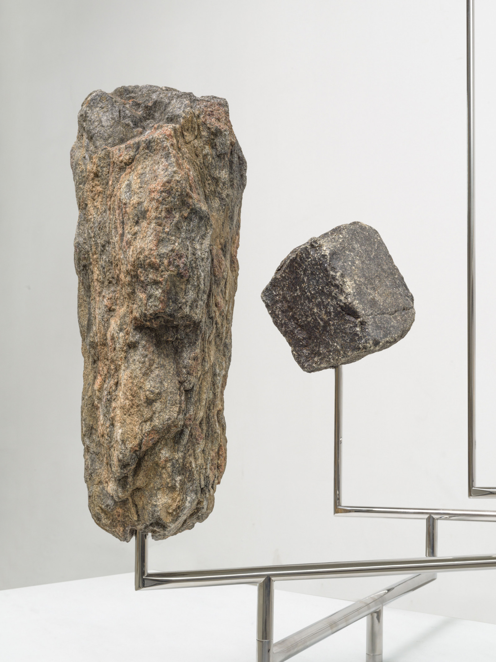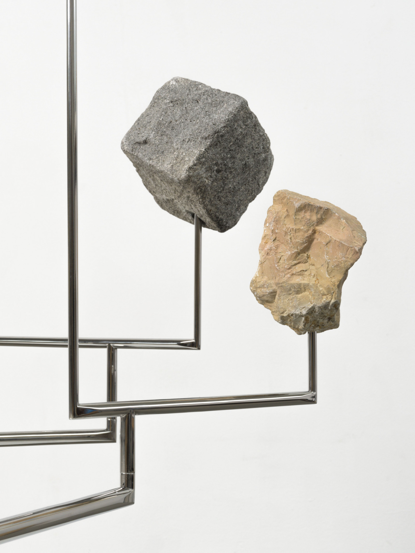 mirror-polished stainless steel, stones