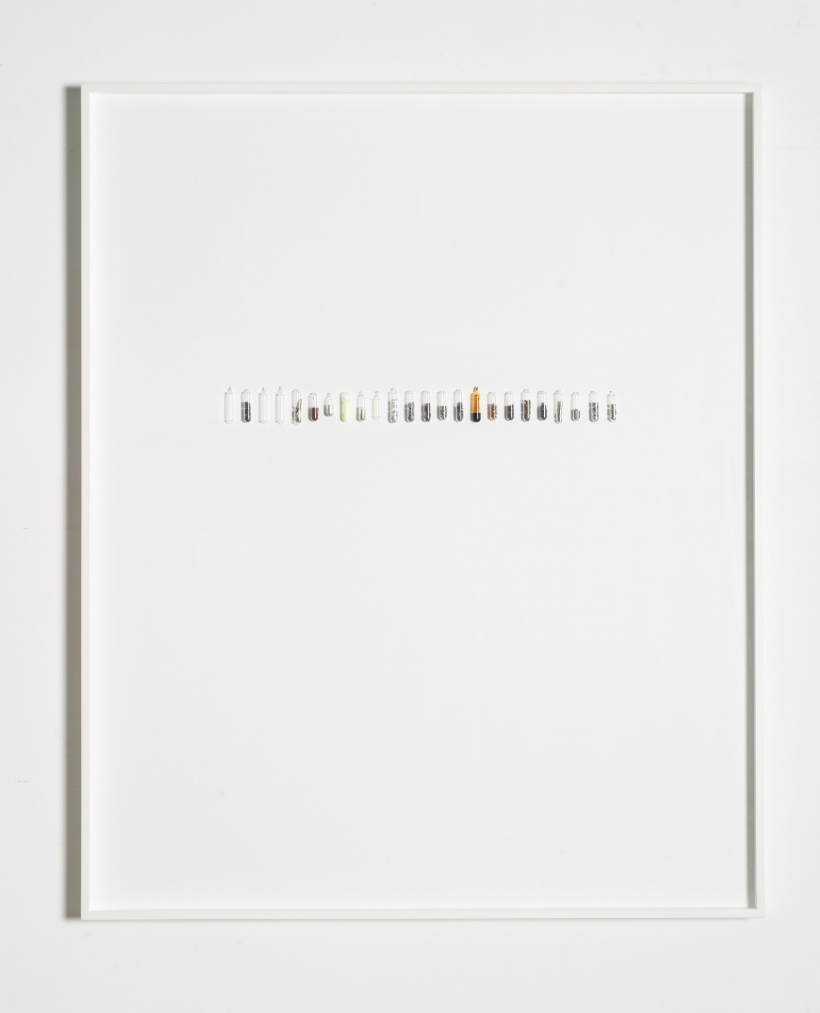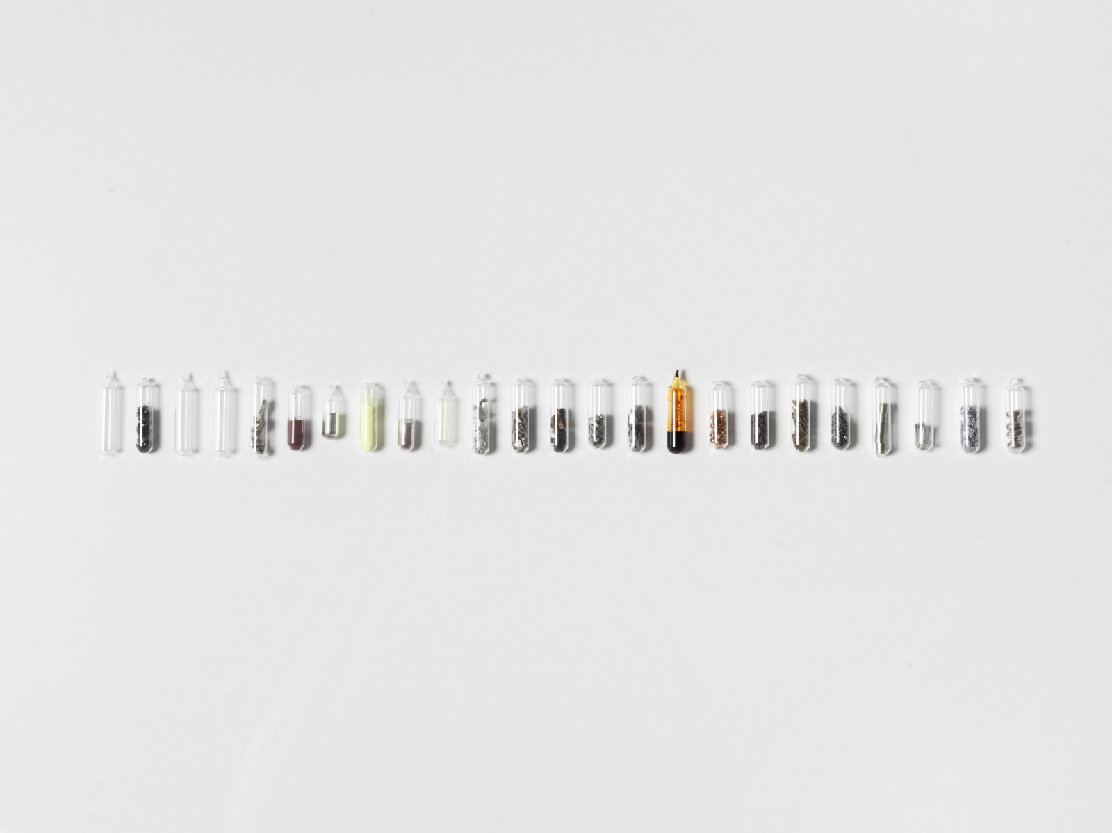 24 vials with the essential elements of the human body, framed (oxygen (O), carbon (C), hydrogen (H), nitrogen (N), calcium ( Ca), phosphorus (P), potassium (K), sulphur (S), sodium (Na), chlorine (Cl), magnesium (Mg), iron (Fe), fluorine (F), zinc (Zn), silicon (Si), bromine( Br), copper (Cu), selenium (Se), manganese (Mn), iodine (I), nickel (Ni), molybdenum (Mo), chromium (Cr), cobalt (Co))