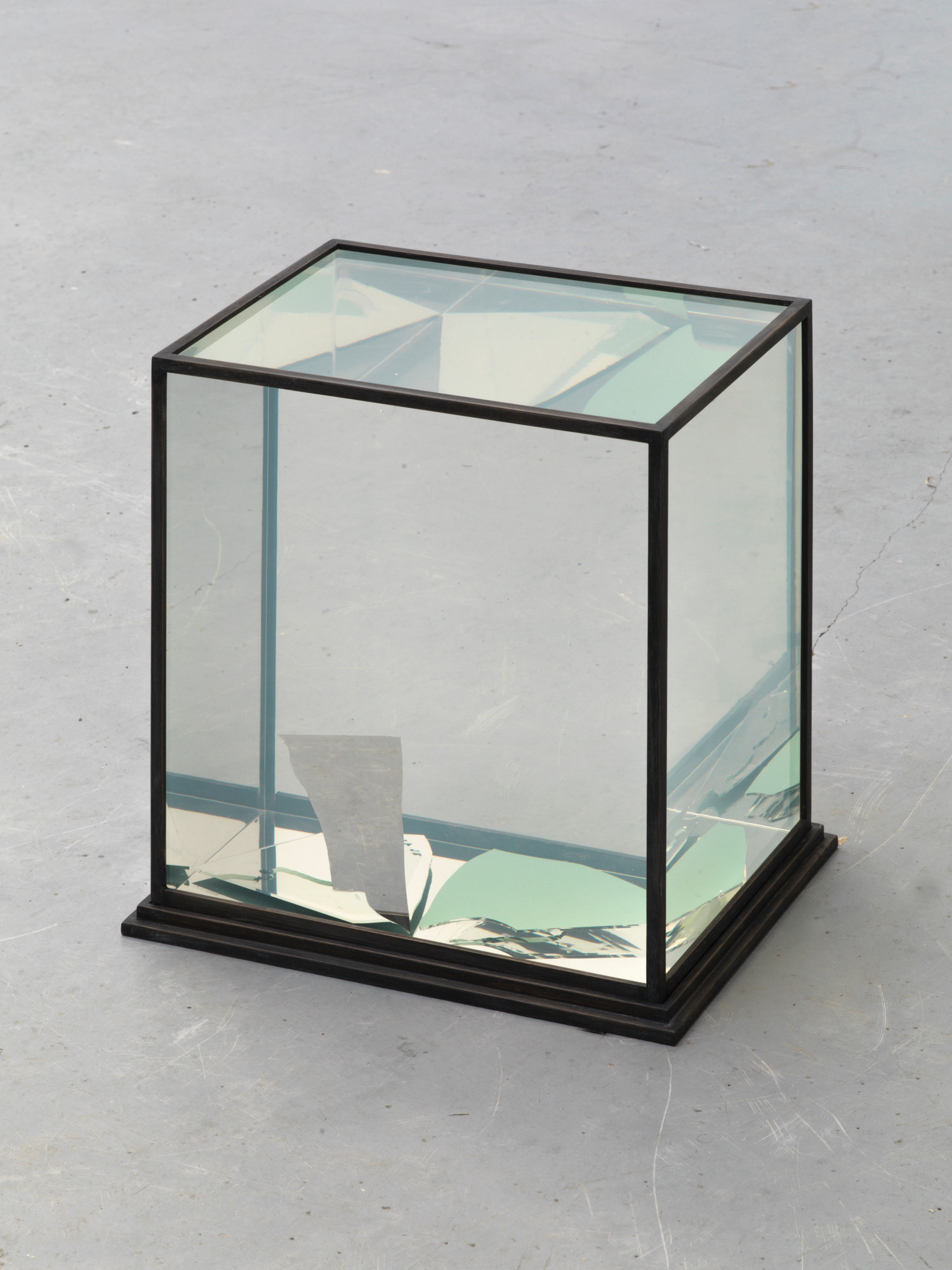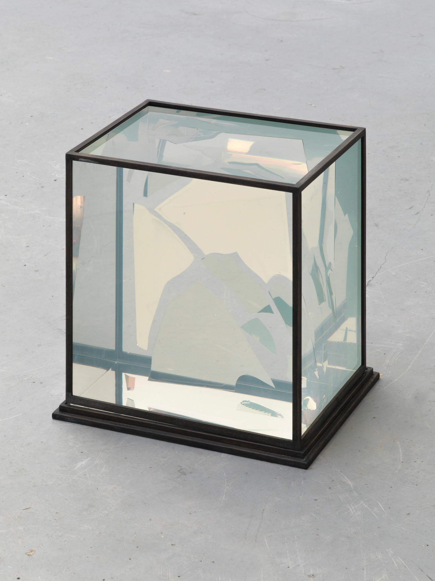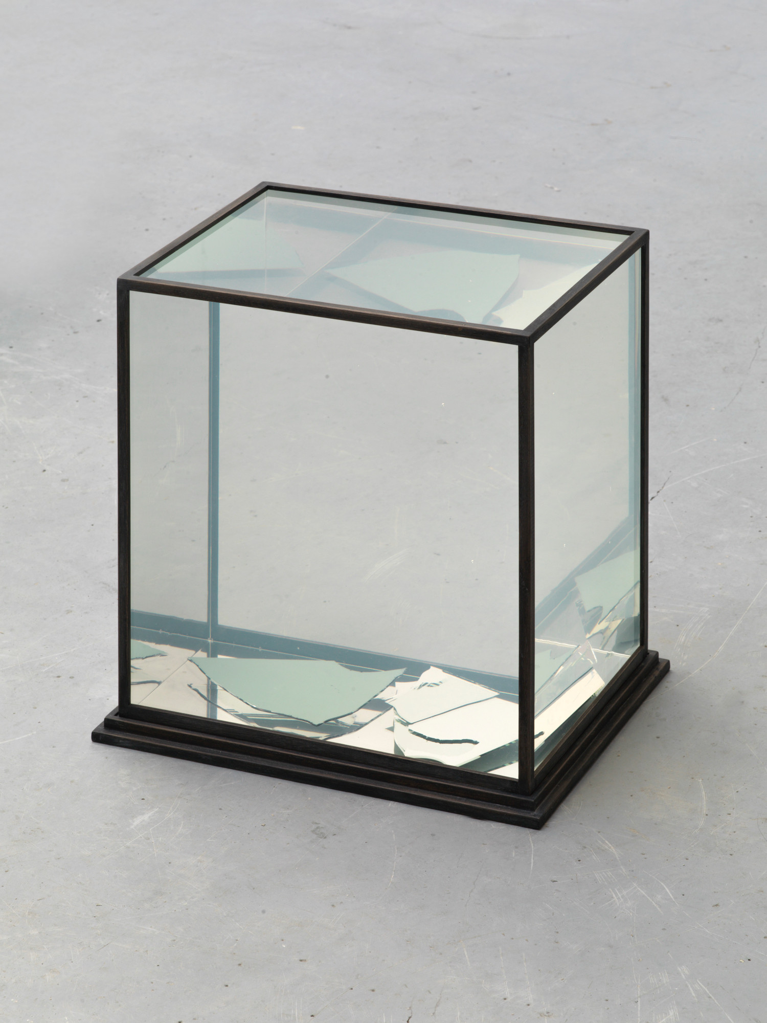 „Space Slot“ observes a mirror while falling down and breaking accidentally into many shards, until they all lie scattered on the floor. The work is showing the very moment of this physical action, as if frozen in time: In five states by repeating the exact same shape of the accidentally formed shards. Limited to the size of the square which works here as a slot in reality: everything out of it disappears - like into a different dimension.
